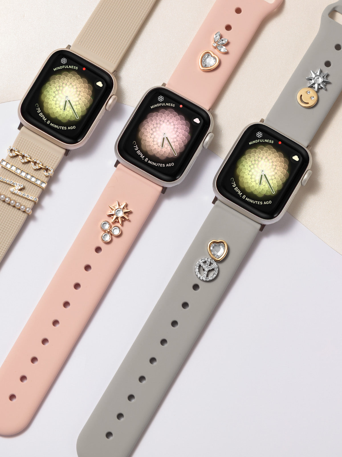 Go ahead, take your pick, and infuse some fun into your style! Enhance your smartwatch band with a touch of personality by choosing from our delightful assortment of Band Candy charms. Slide the bar on the right to preview the collection.